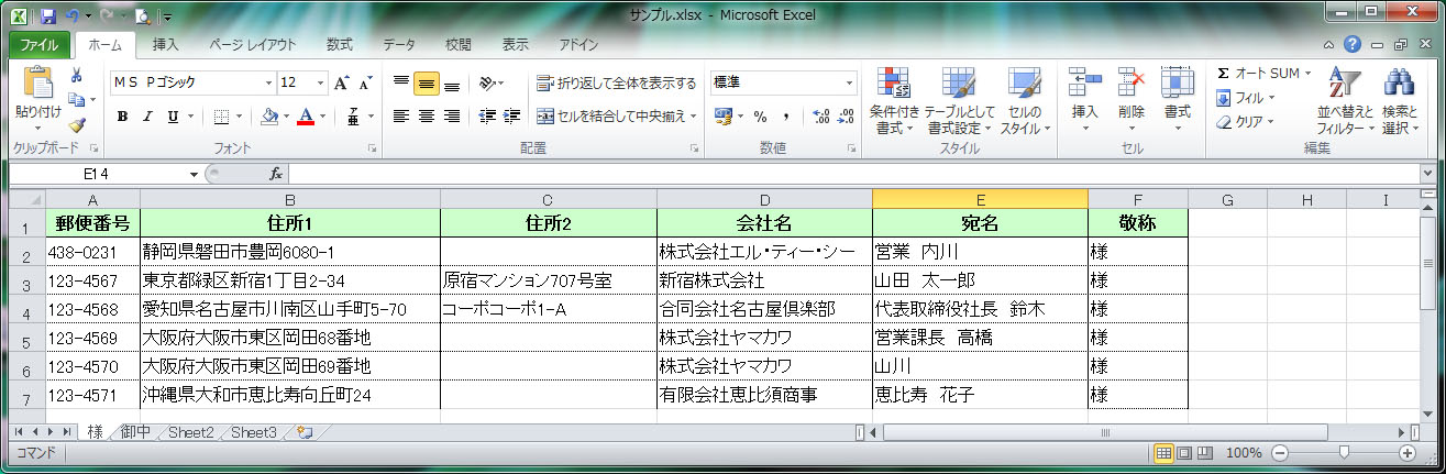 - 様・御中をつける場合は、必ず『様』だけ・『御中』だけにして、シートに分けてください。